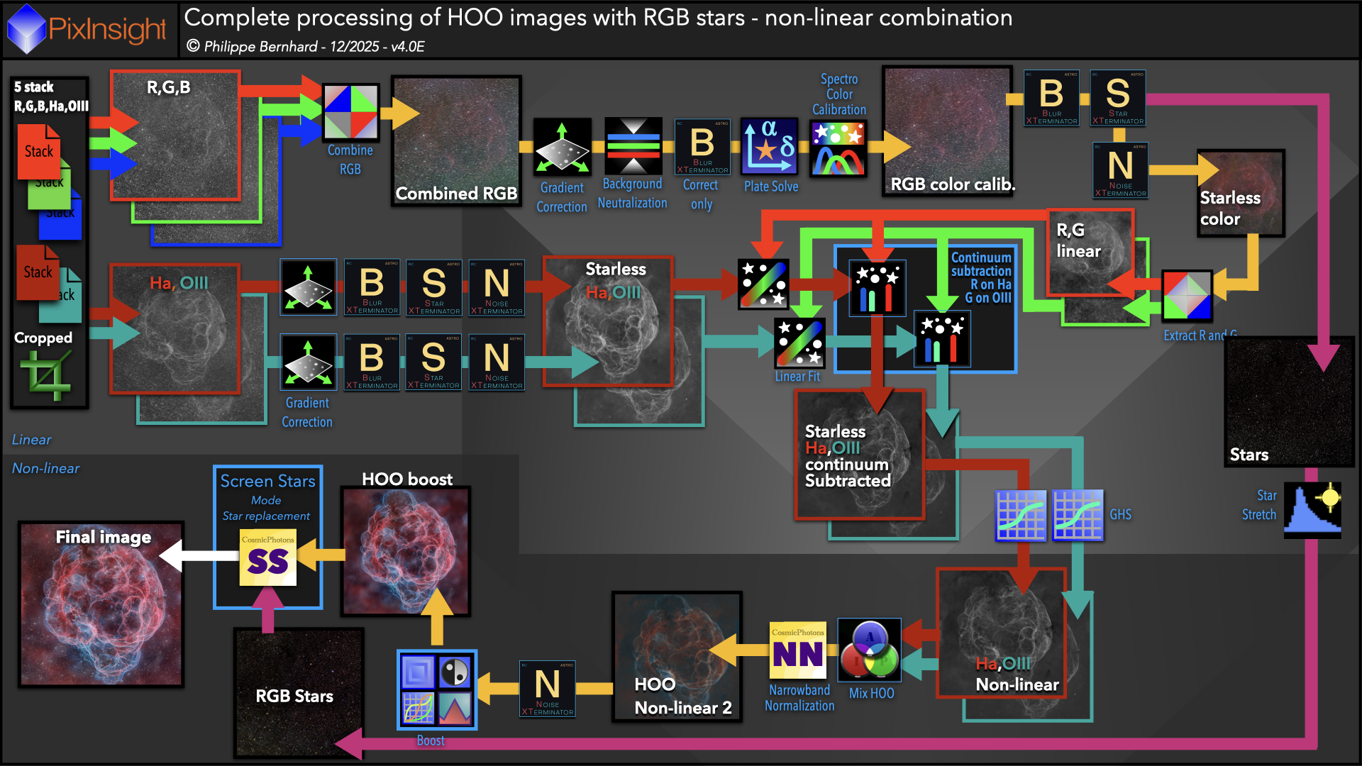 HOO2A-Complete processing of HOO images with RGB stars-linear combination