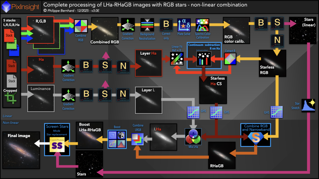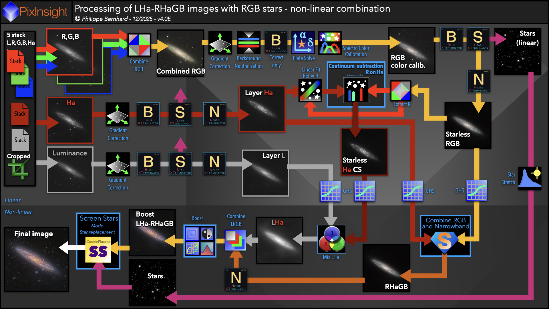 RGB4B-Complete processing of LHa-RHaGB images with RGB stars - non -linear combination