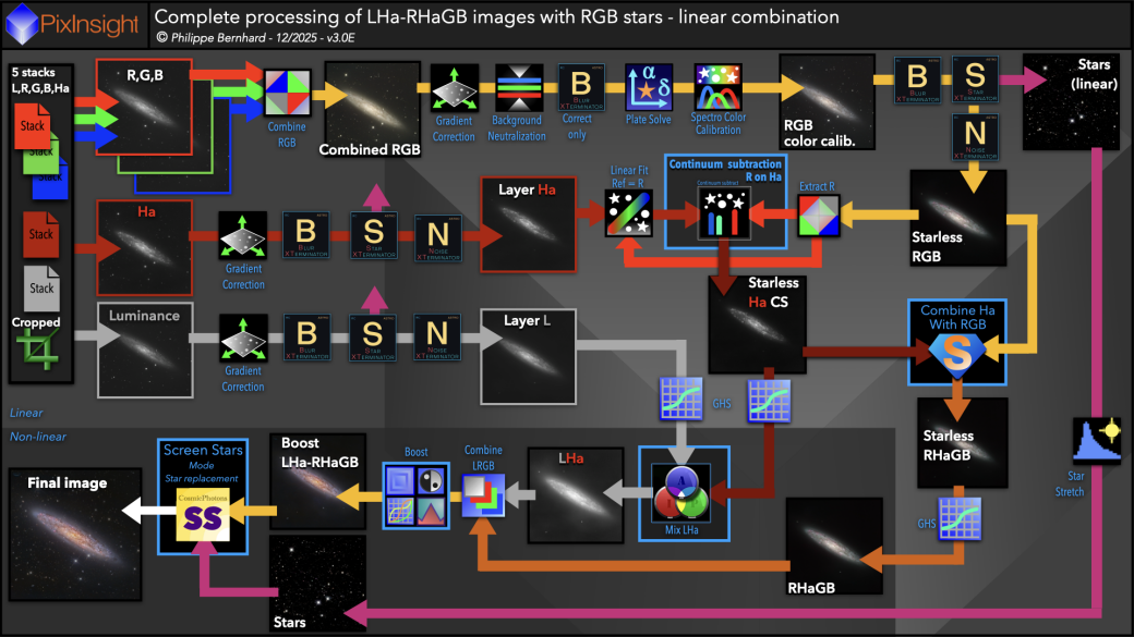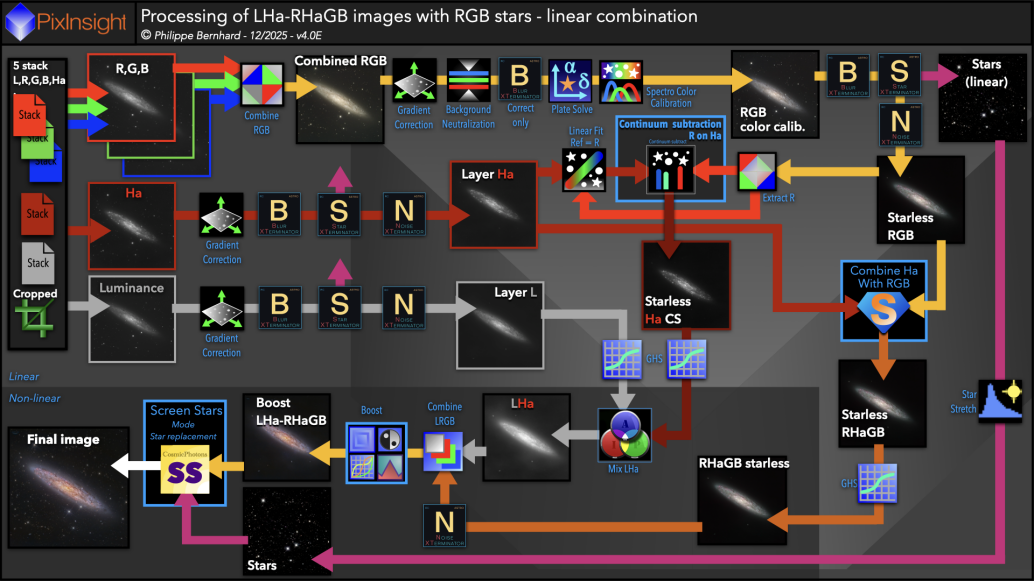 RGB4A-Complete processing of LHa-RHaGB images with RGB stars - linear combination