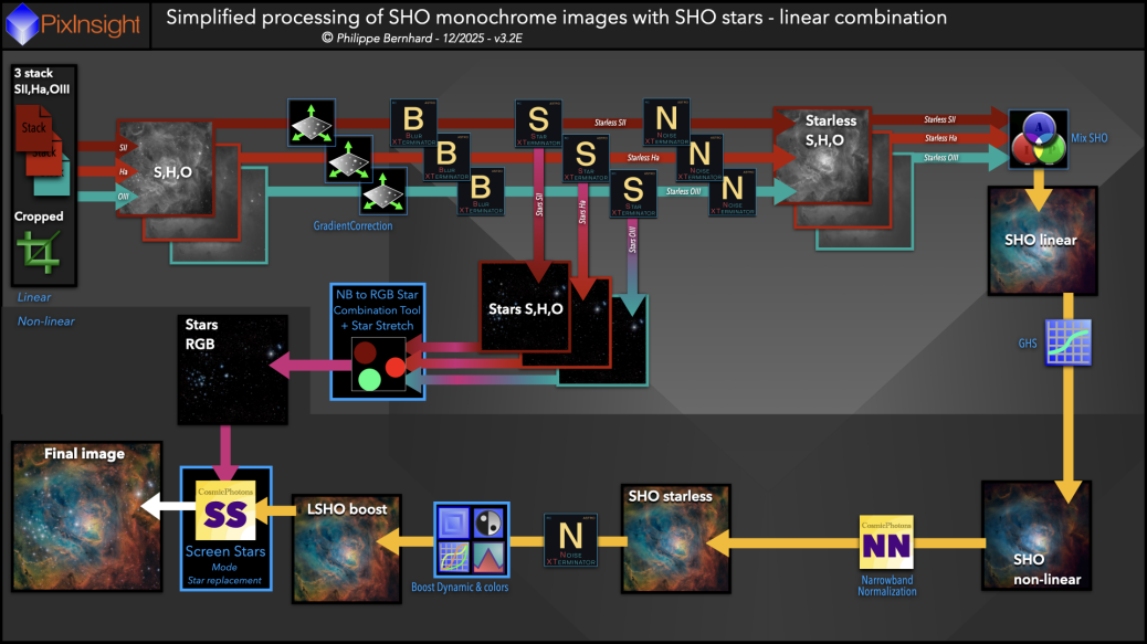 SHO3B-Complete processing of (L)SHO images with RGB stars (linear mix)